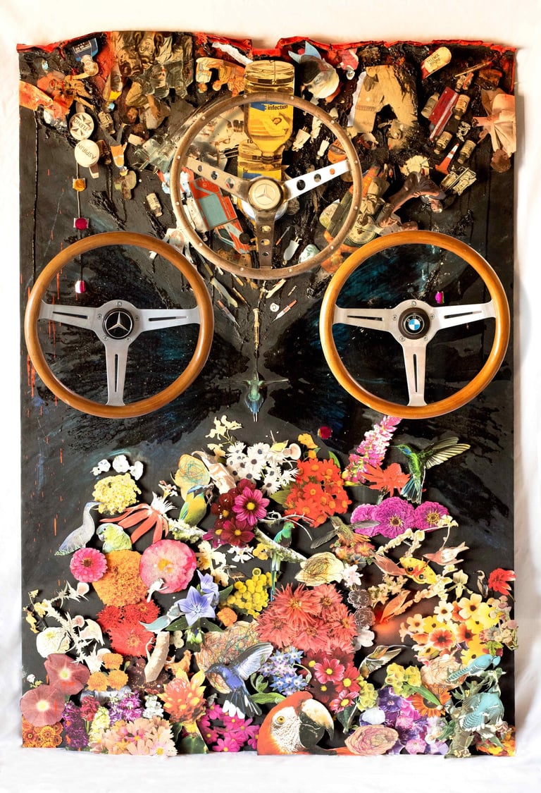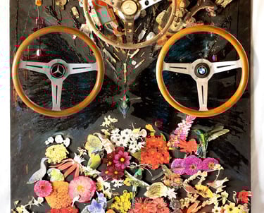 Vintage Paper, Foam, Resin, Pastel, Wire, Spray Paint, Chalk, Pencil, Tar, Vintage Steering Wheels, Board, Paper, Glue