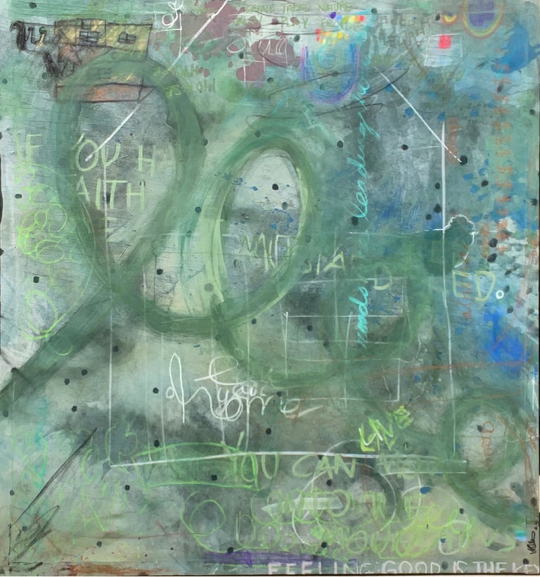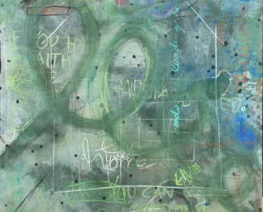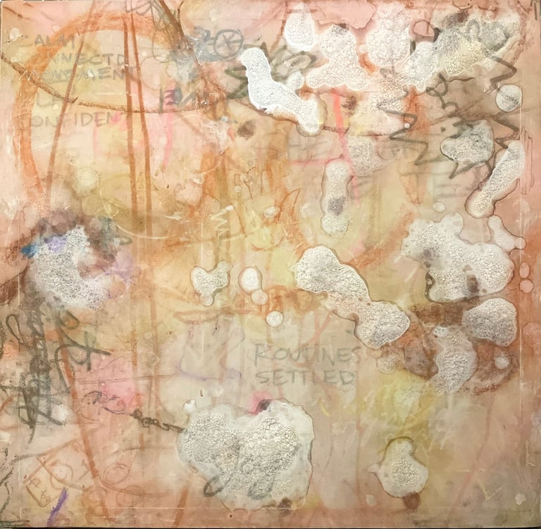 Acrylic Paint, Chalk Pastel, Oil Pastel, Fabric Dye, Soap, Coffee on Stretched Canvas