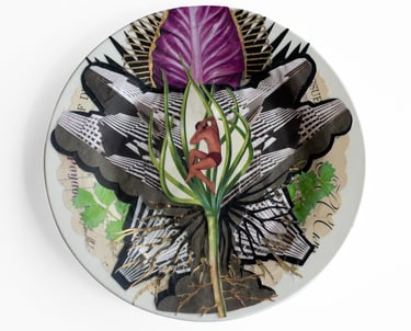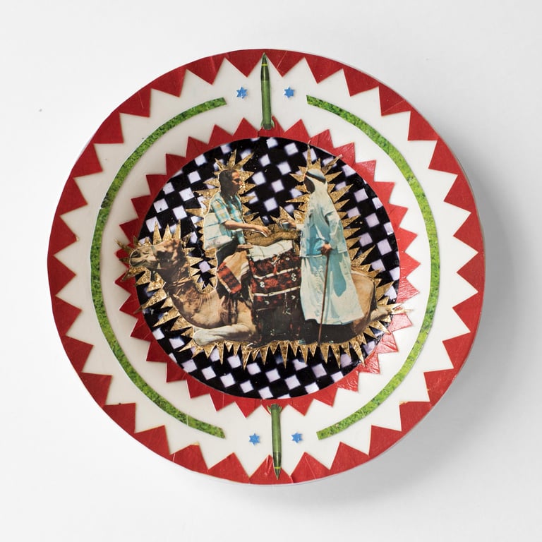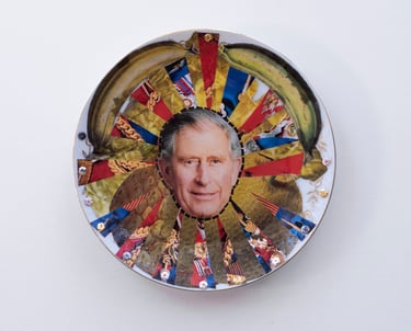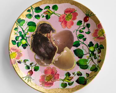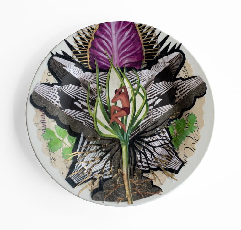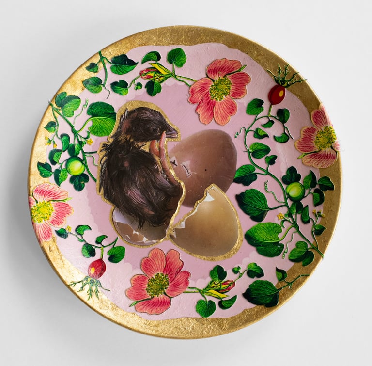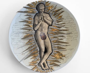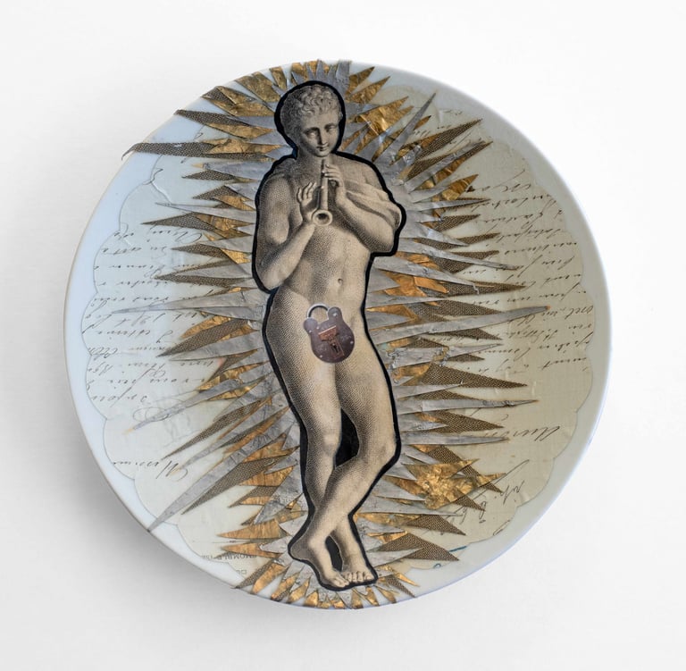 Ceramic Plate, Paper, Paint, Gold Leaf, Glue, Resin